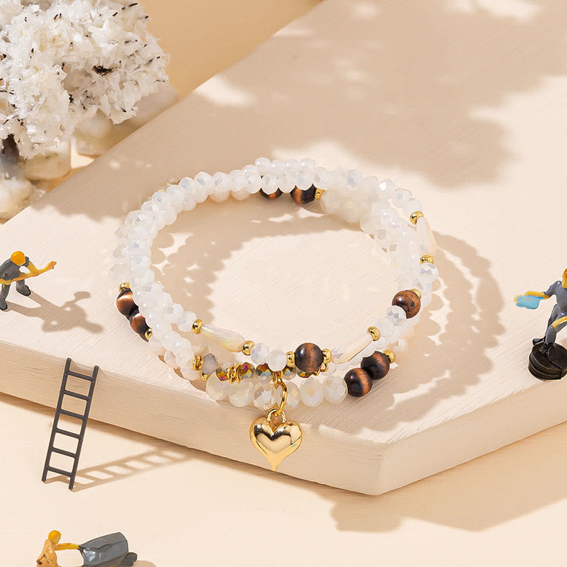 Olivenorma Crystal Gold Love Pendant Three-Layer Bracelet Set