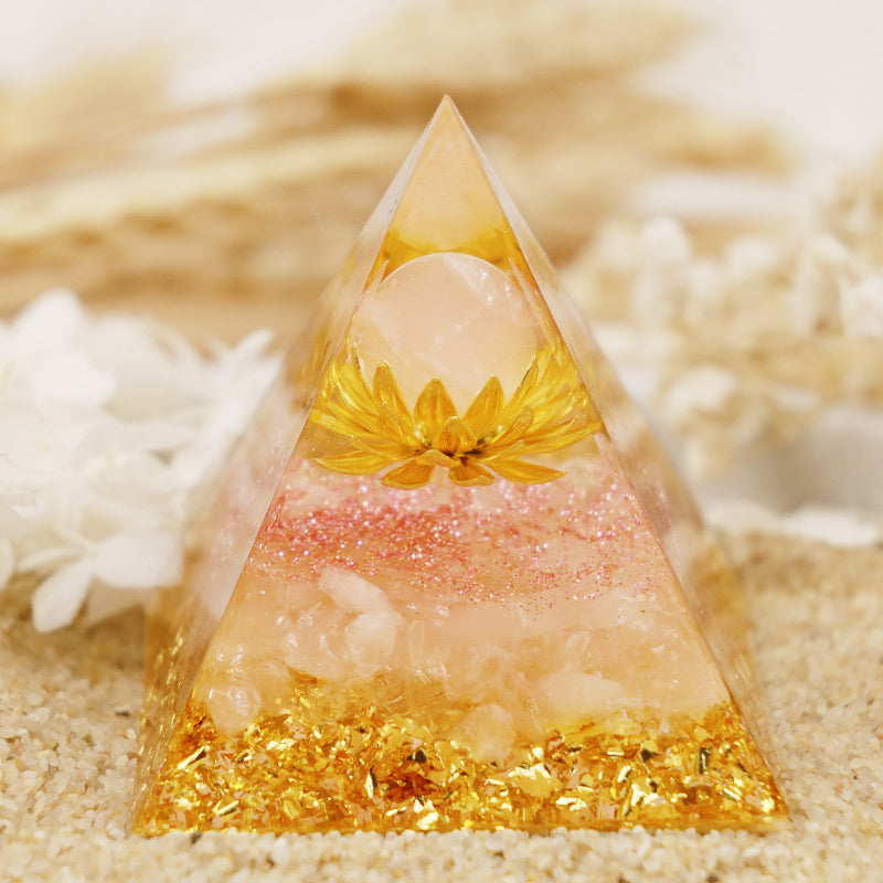 Olivenorma Red Coral Rose Quartz Lotus Symbol Orgone Pyramid