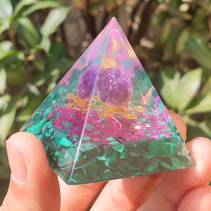 Olivenorma Malachite And Amethyst Orgone Pyramid