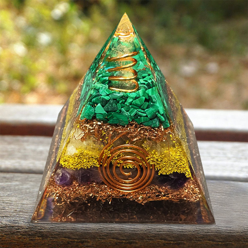 Olivenorma Malachite Citrine With Amethyst Orgone Pyramid