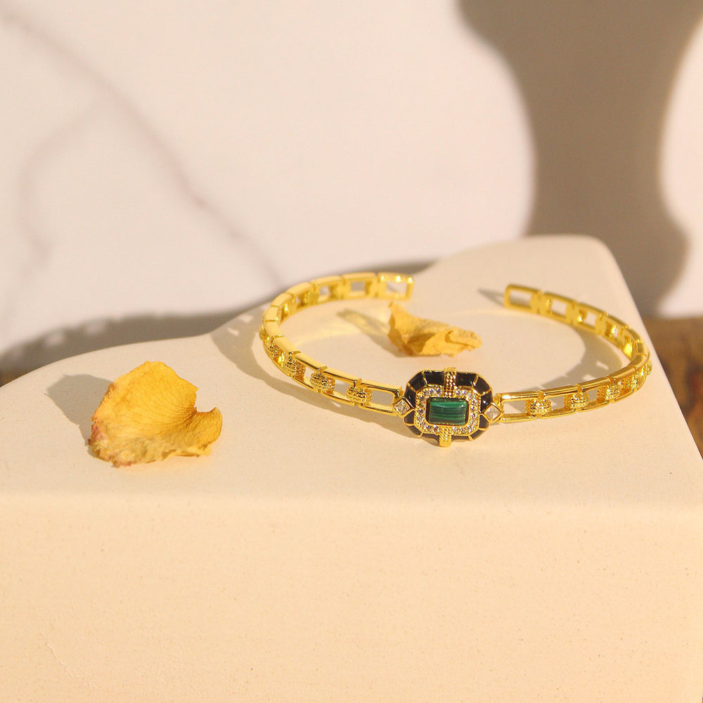 Olivenorma Black Onyx Malachite Premium Adjustable Bangle Bracelet