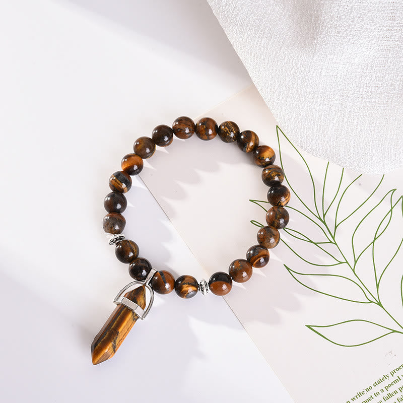 Olivenorma 8mm Beaded Crystal Hexagon Prism Pendant Bracelet