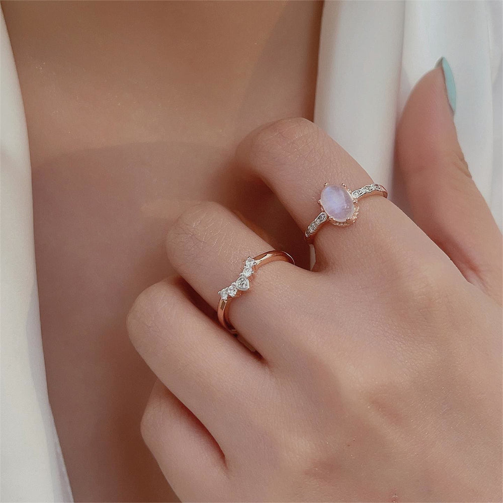 Olivenorma Moonstone Cabochon Inlaid White Zircon Simple Ring