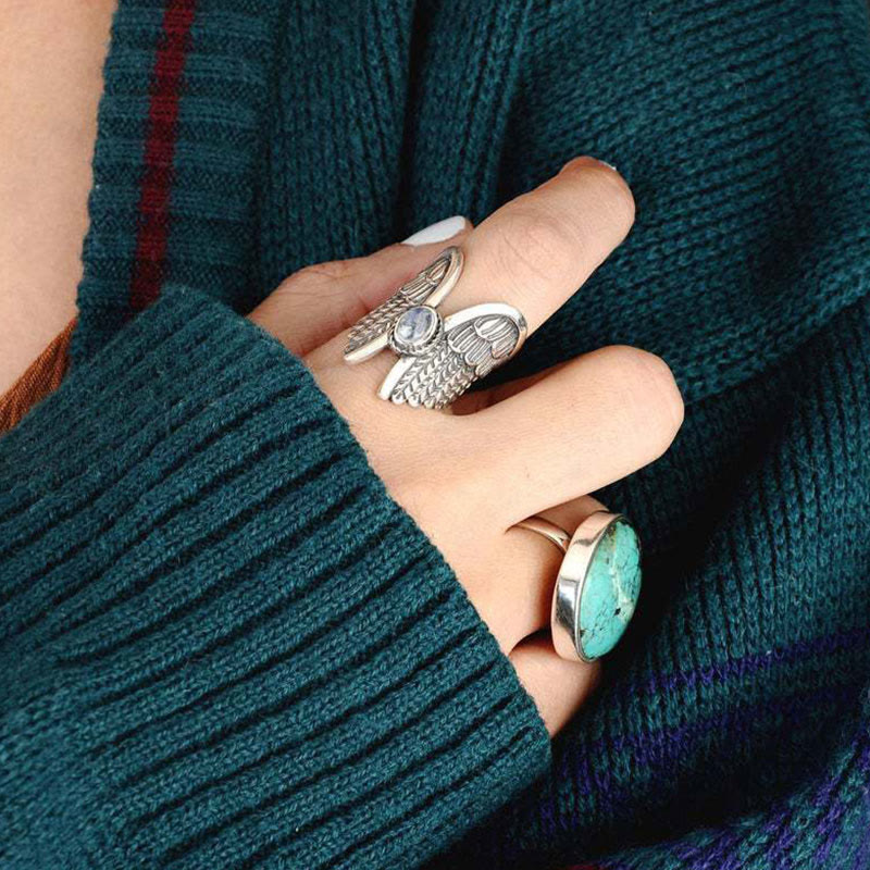 Olivenorma Angel Wings Moonstone Feather Ring