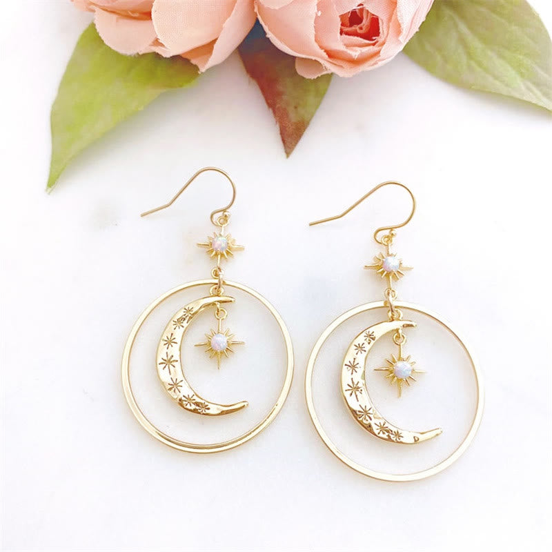 Olivenorma Moonstone Moon Sun Pendant Earrings