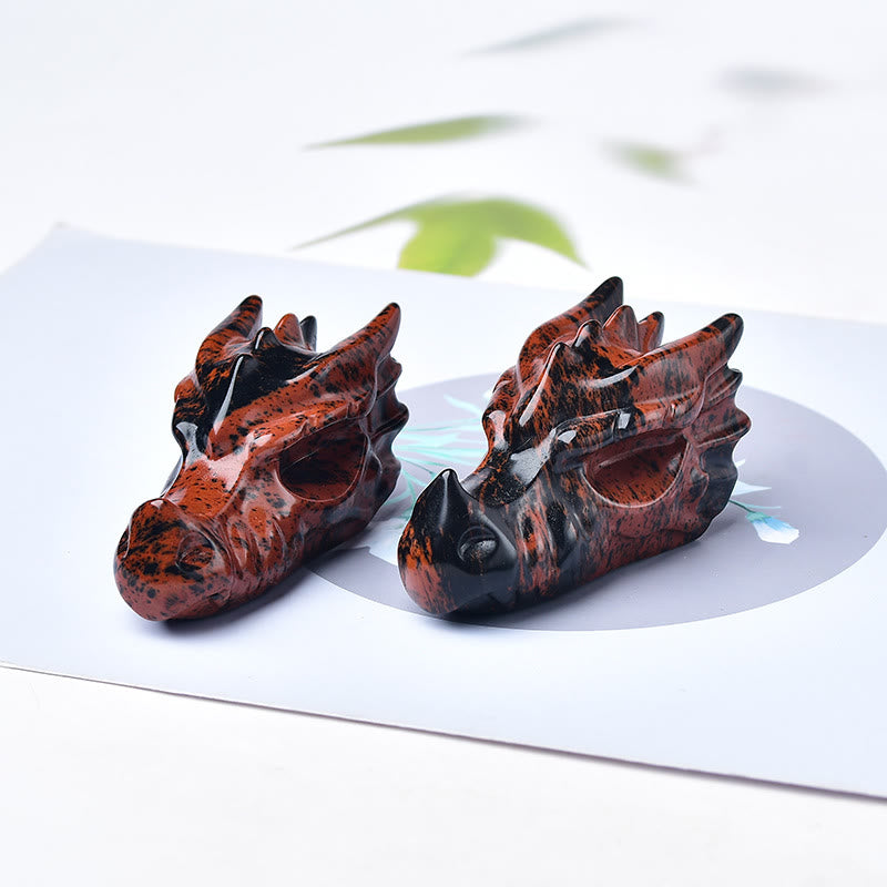 Olivenorma Mahogany Obsidian Moss Agate Dragon Head Gemstone Decoration