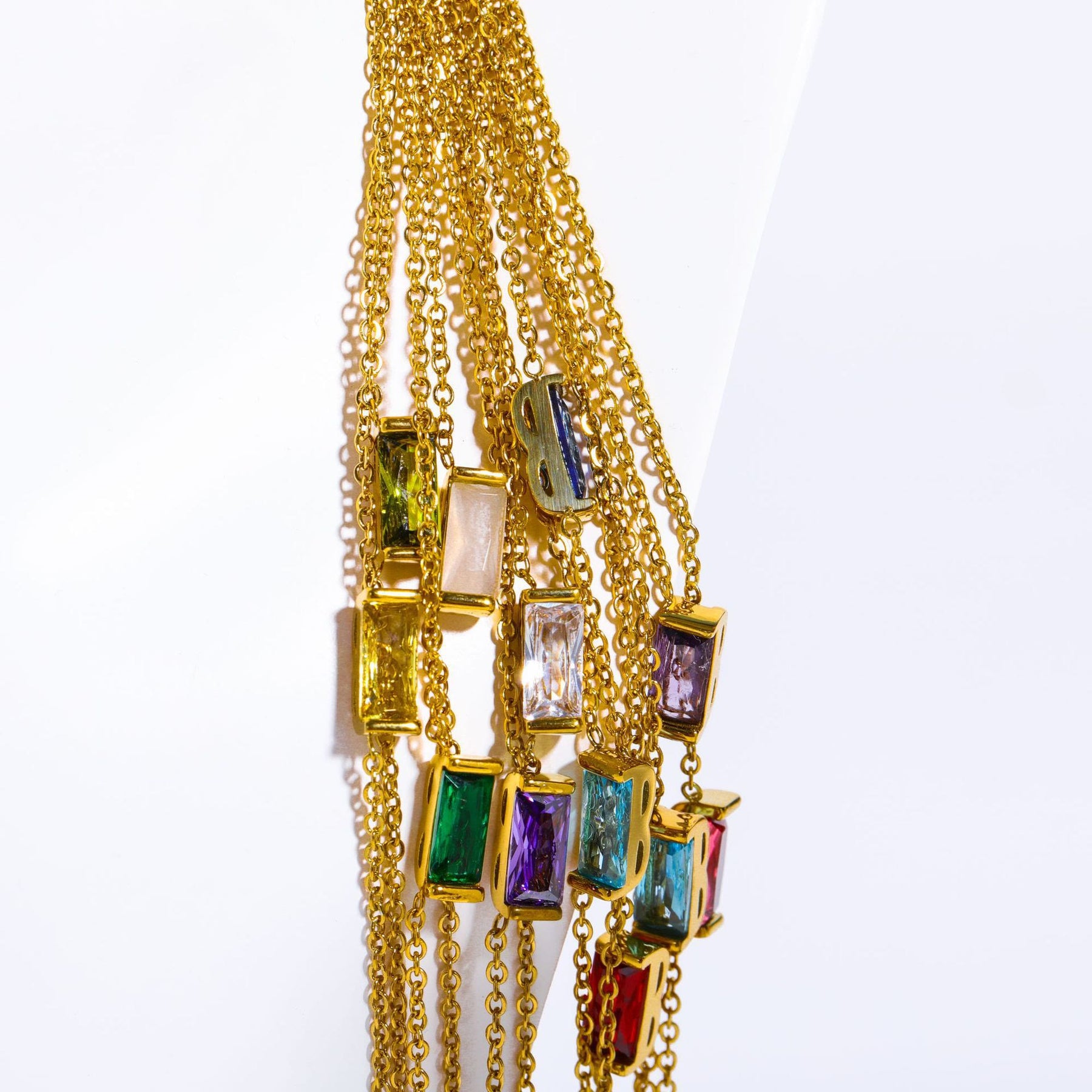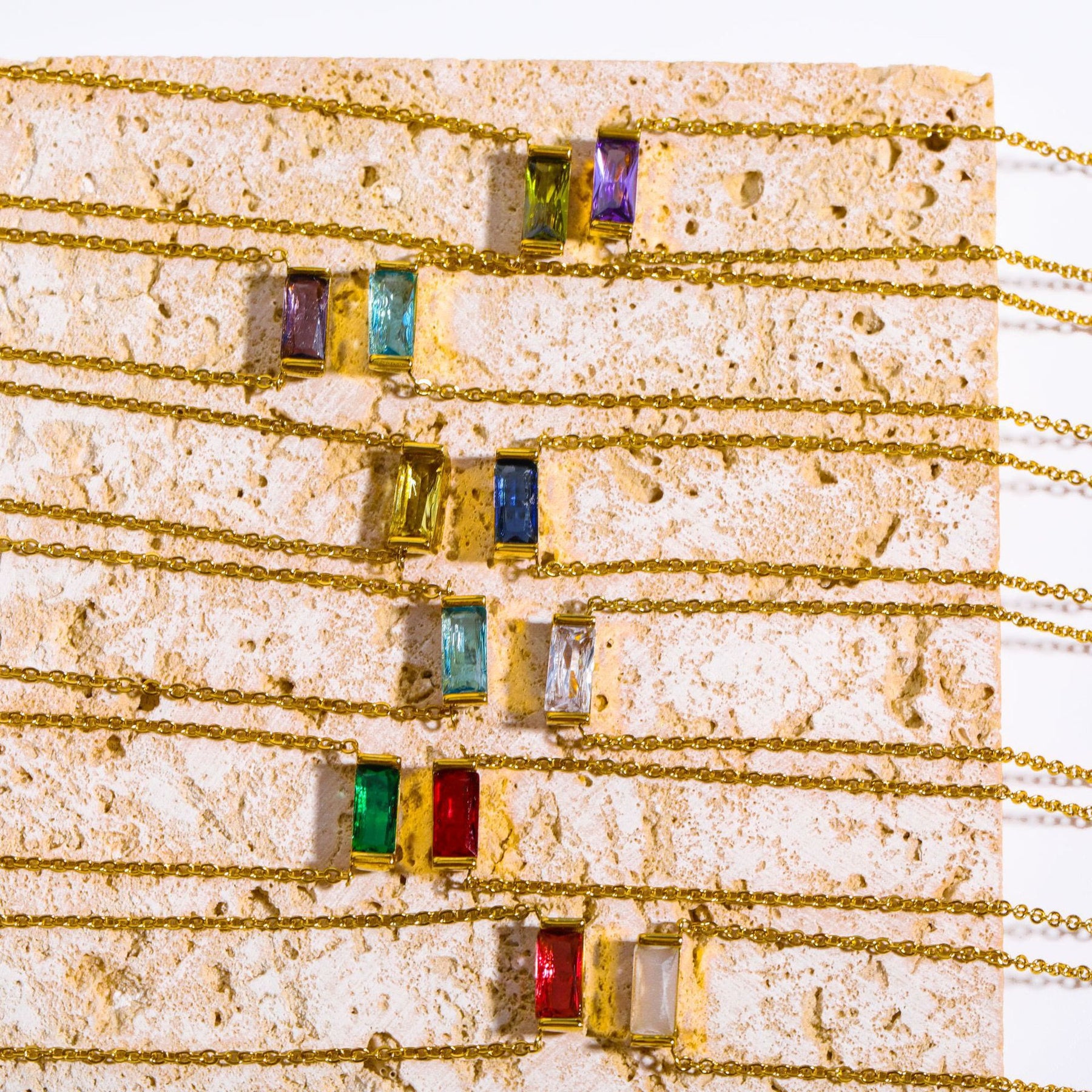 • ✨Simple Rectangular Birthstone Pendant Stainless Steel Necklace With Birthstone Card ✨