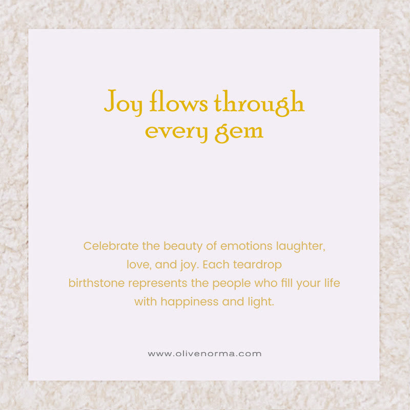 • The Tears of Joy Teardrop Birthstone Gift with Birthstone Card is a graceful symbol of love, emotion, and inner strength. Its elegant teardrop design represents the beauty found in every tear — not of sadness, but of gratitude, joy, and heartfelt moments. At the center, a radiant birthstone shines with vibrant color, reflecting your unique personality and spirit.