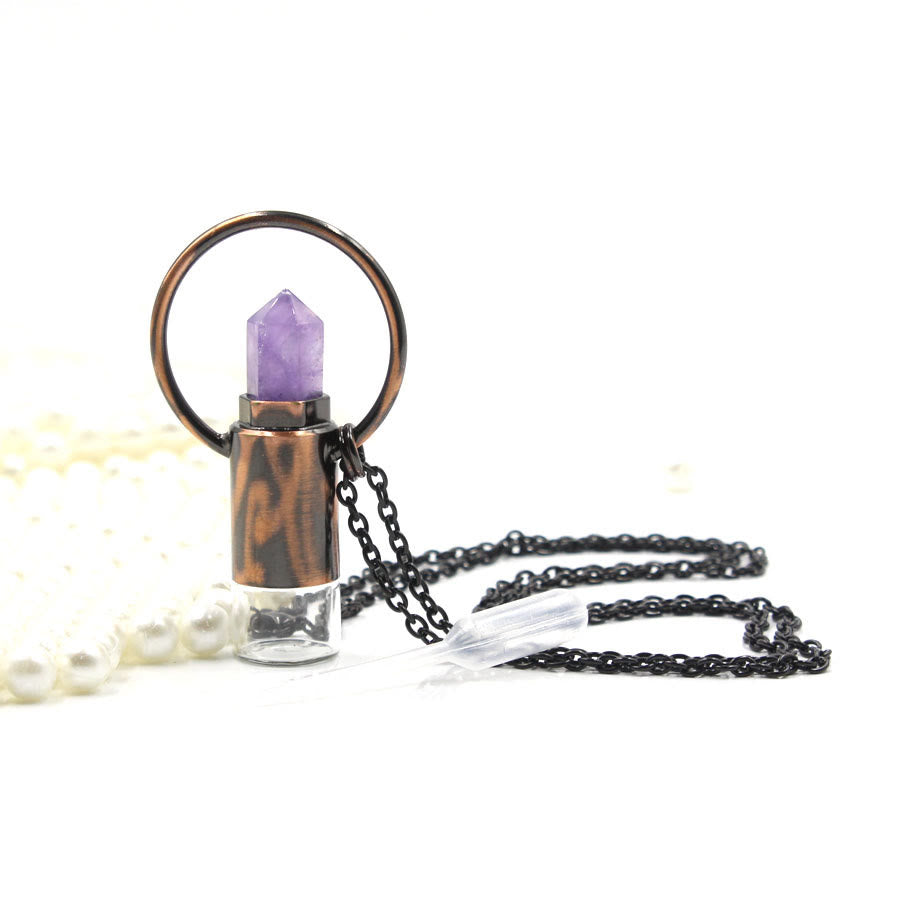 Olivenorma Natural Crystal Prismatic Bullet Perfume Bottle Pendant