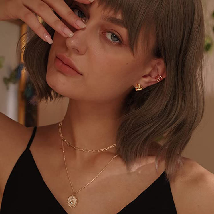 Olivenorma Evil Eye Hamsa Gold Color Layered Chain Necklace