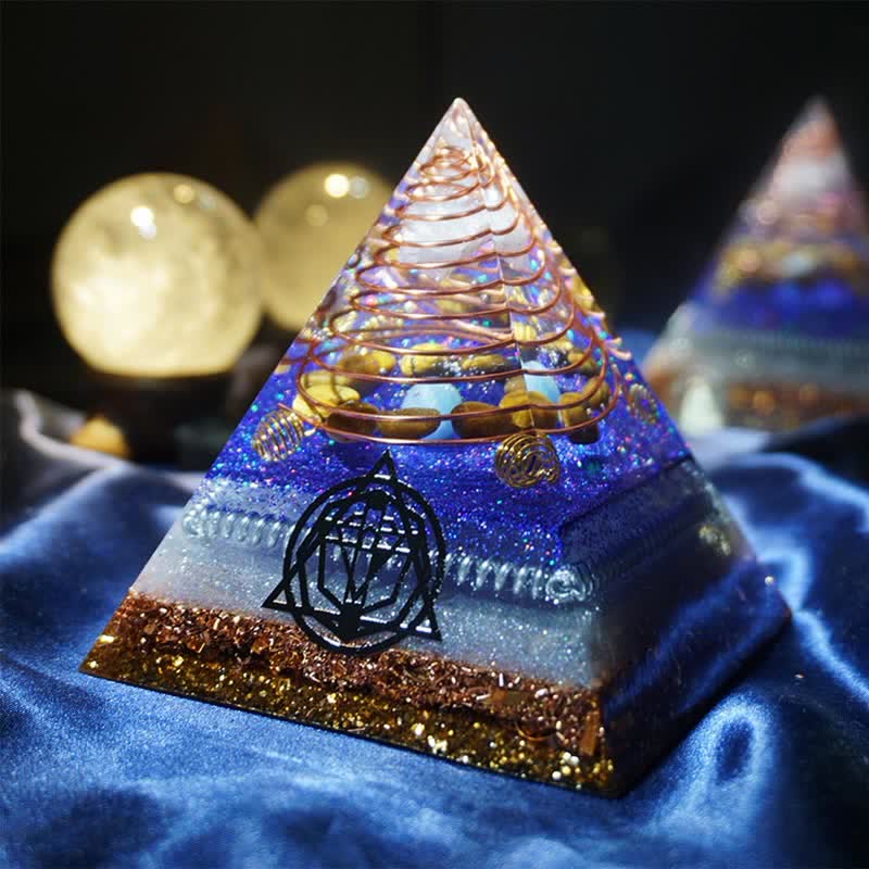 Olivenorma "Starry Sea" Clear Crystal Lapis Lazuli Orgone Pyramid