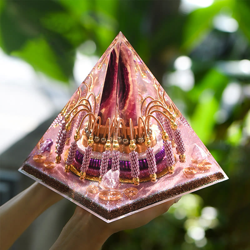 Olivenorma "Love Magic" Lepidolite Strawberry Quartz Orgone Pyramid