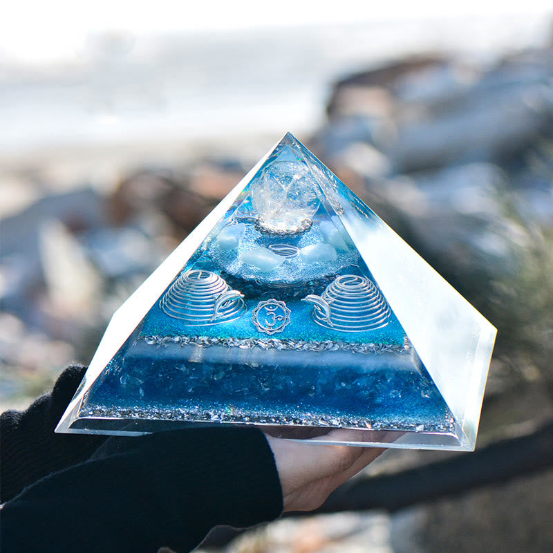 Olivenorma "Atlantis" Clear Crystal Aquamarine Orgone Pyramid