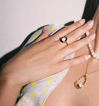 Olivenorma Dainty Opal Black Epoxy Vintage Ring