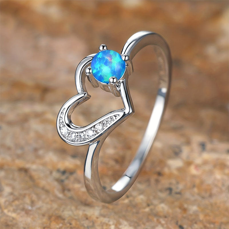 Olivenorma "Deep in Heart" - Simple Circular Opal Hollow Heart Ring