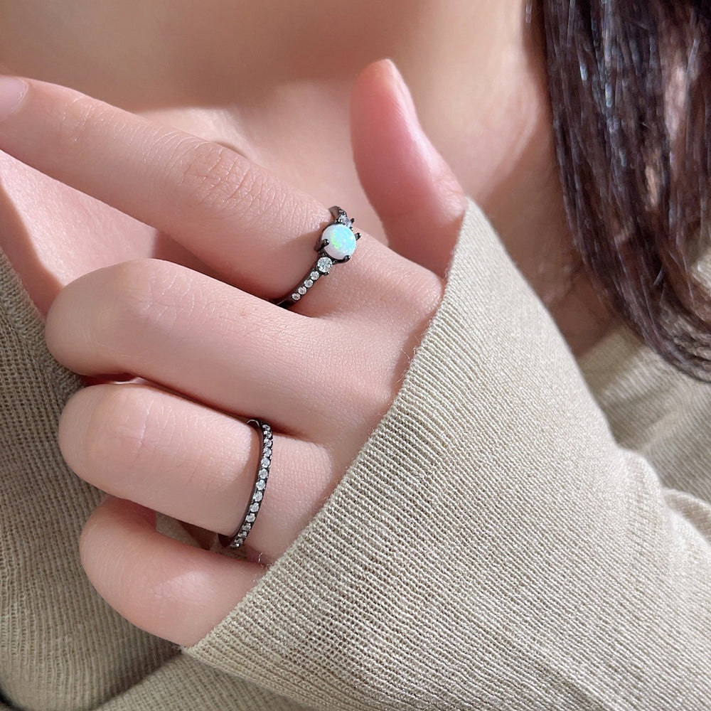 Olivenorma Opal Zircon S925 Black Gold Double Layer Ring