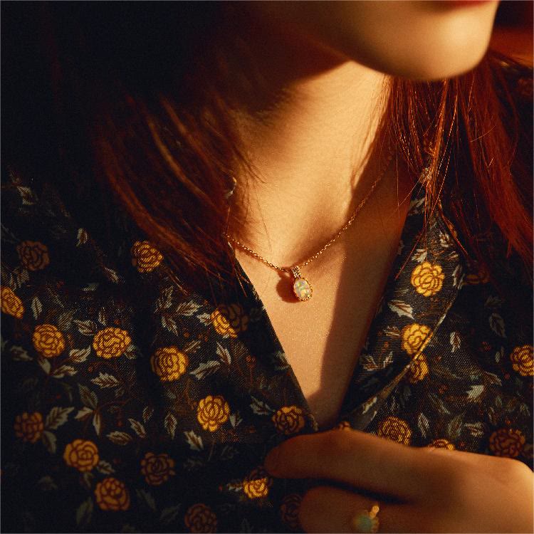 Olivenorma Water Drop Opal 18k Gold Plated Copper Necklace