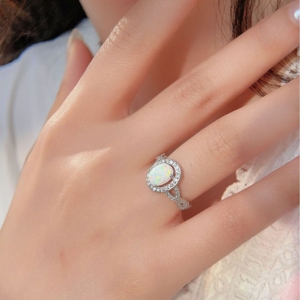 Olivenorma Oval Opal White Zircon Braided Design Ring