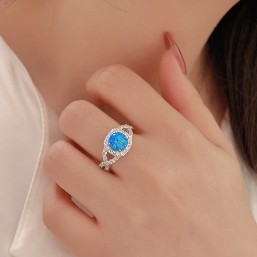 Olivenorma Blue Opal White Zircon 925 Sterling Silver Ring