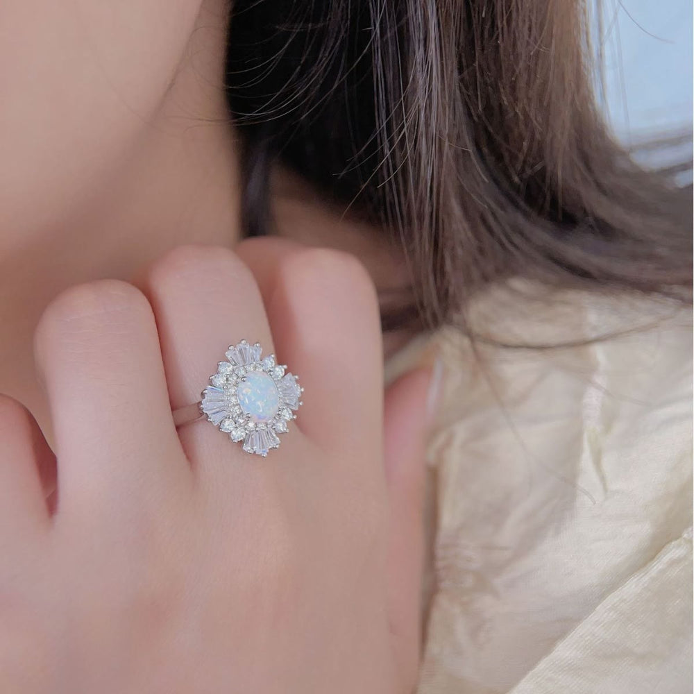 Olivenorma Inlaid Opal White Zircon Light Luxury Ring