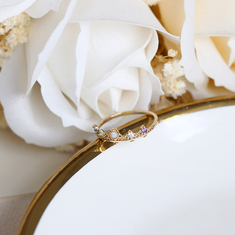 Olivenorma 2pcs Opal White Zircon Crown Ring Set