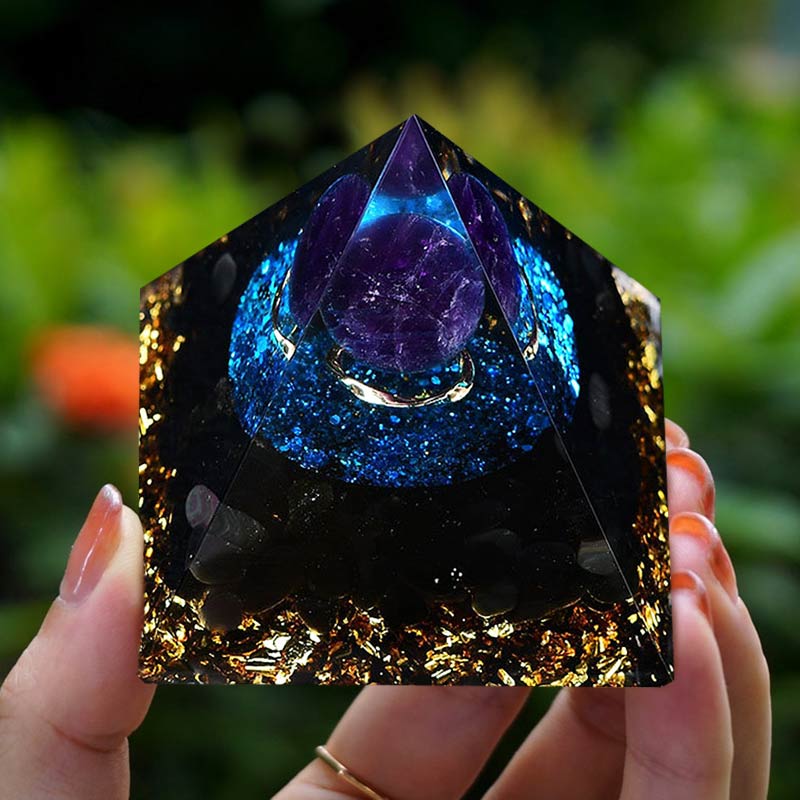 Olivenorma Sun Stone Sphere With Amethyst Orgone Pyramid