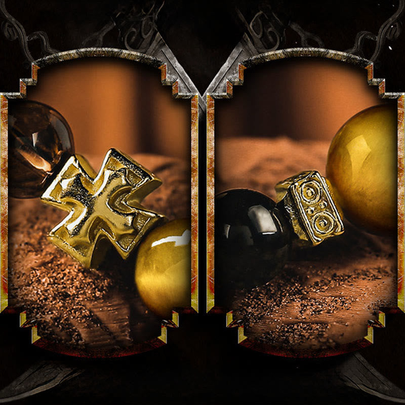 - Name: Olivenorma Cross Smoky Quartz&Obsidian Double Wrap Beaded Bracelet