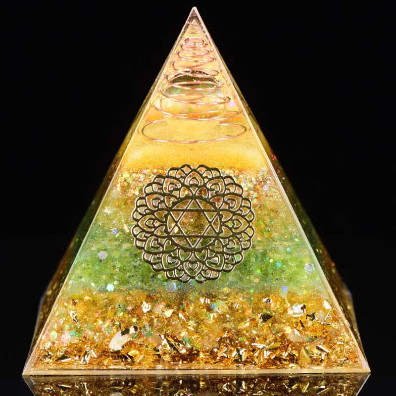 Olivenorma "Good Luck In Year" Citrine Peridot Orgone Pyramid