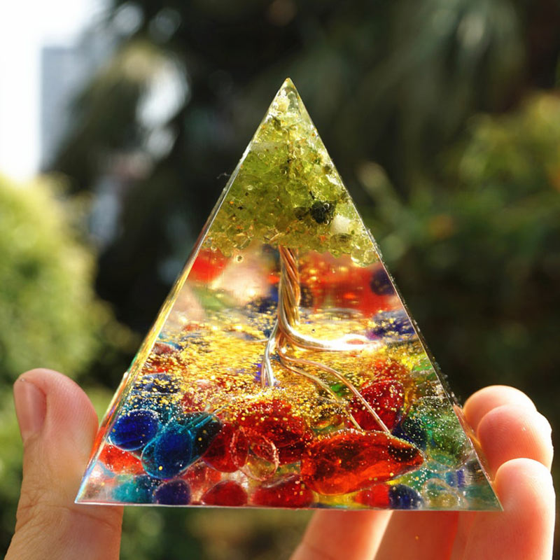 Olivenorma Aquamarine Peridot Tree Of Life Orgone Pyramid