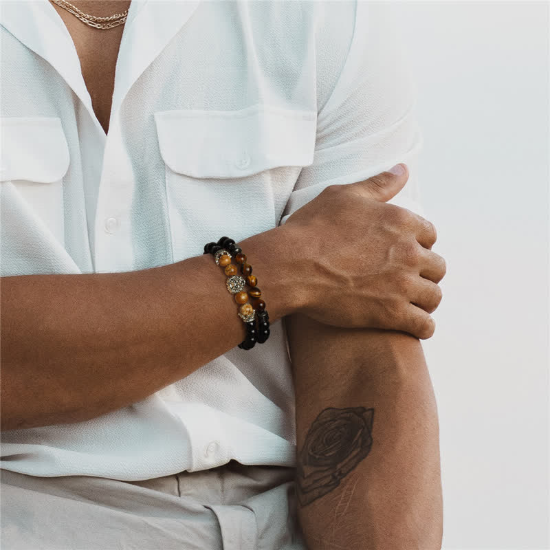Olivenorma Obsidian Tiger Eye Stone Lion Head Beaded Bracelet