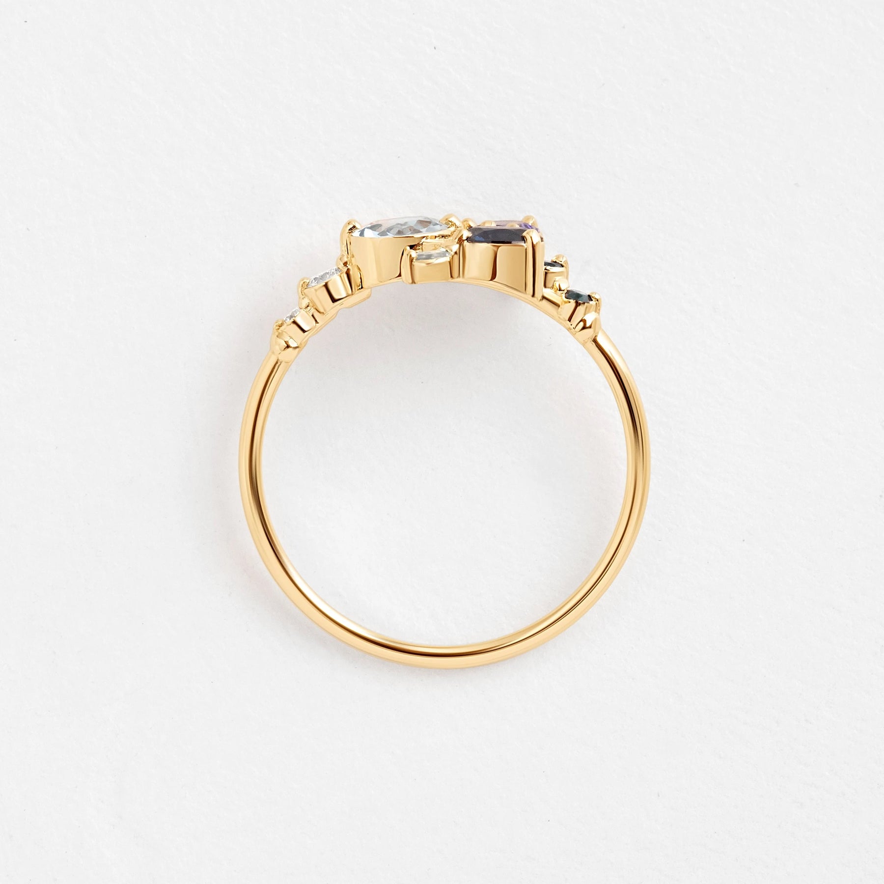 This elegant 2-piece ring set features shimmering aquamarine zircon and blue topaz tones, symbolizing calm, clarity, and refined beauty. The delicate sparkle and harmonious color combination create a luxurious look that elevates any outfit.