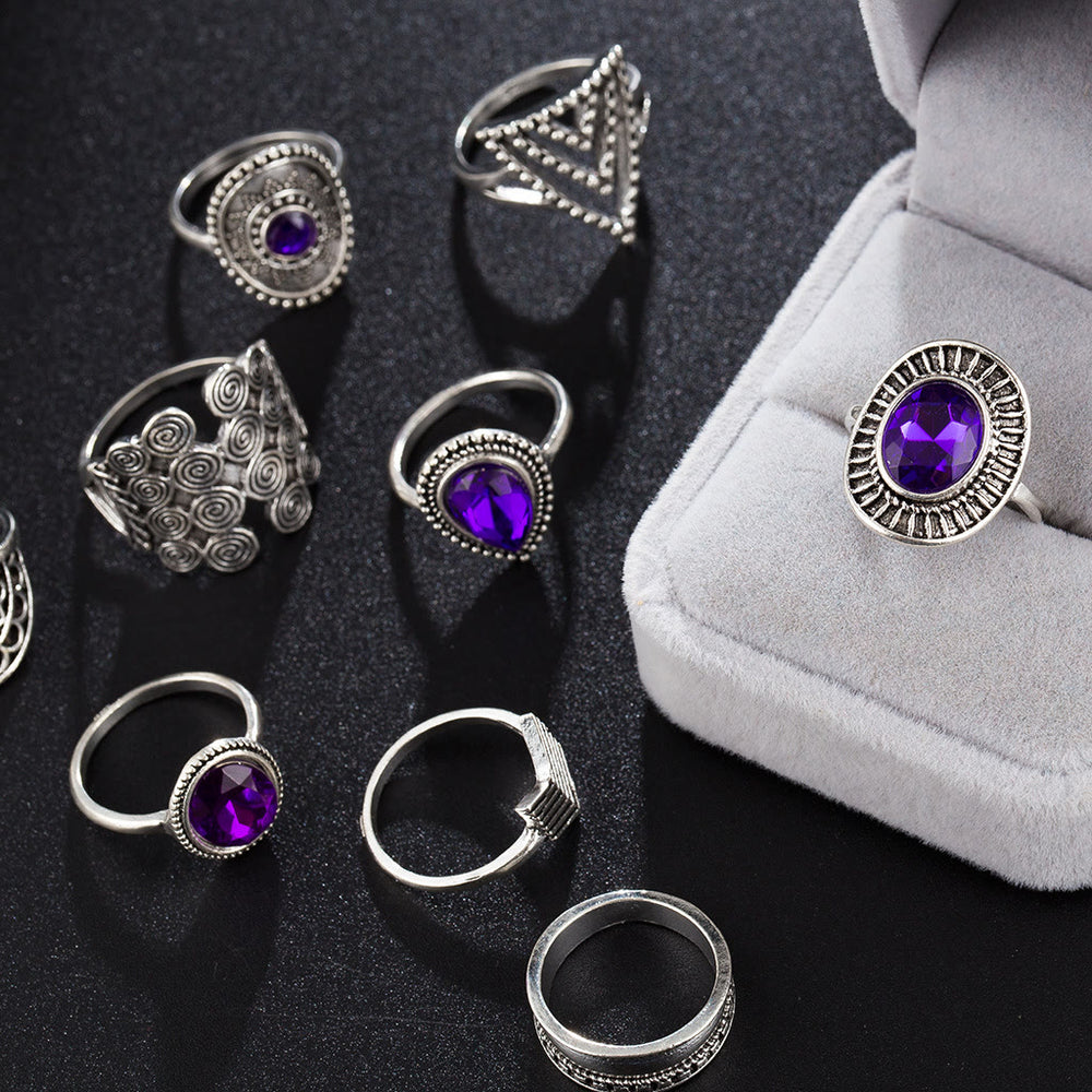 Olivenorma Vintage Purple Zircon Hollow 9 Piece Ring Set