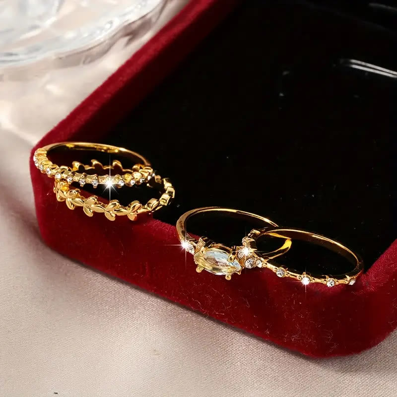 Olivenorma 4 Pcs Elegant Blue Topaz Leaf Engagement Ring Set