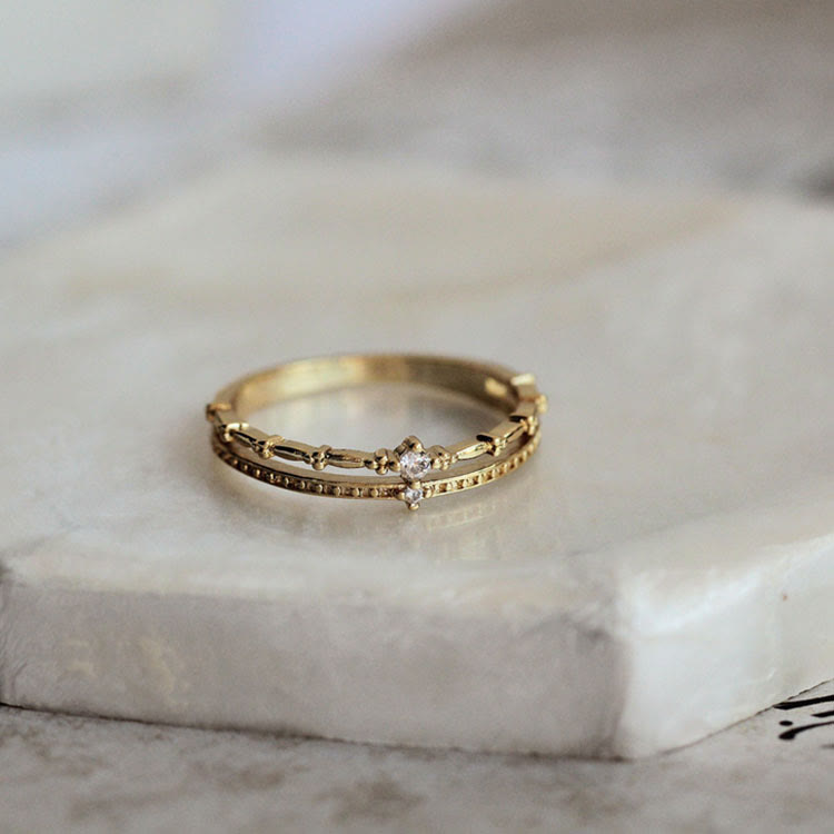 Olivenorma White Zircon S925 Sterling Silver Two Layer Ring