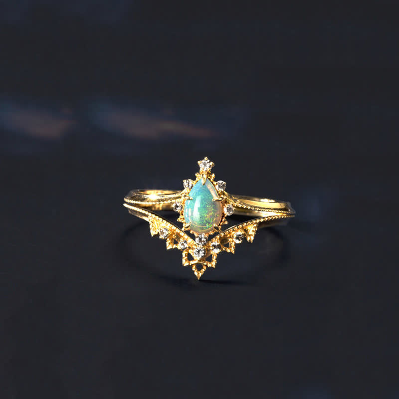 Olivenorma 2pcs Opal White Zircon Crown Ring Set