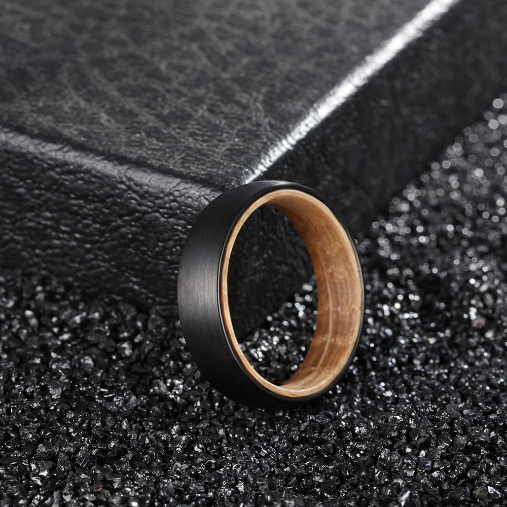 Olivenorma 6mm Whiskey Barrel Wood Black Tungsten Ring