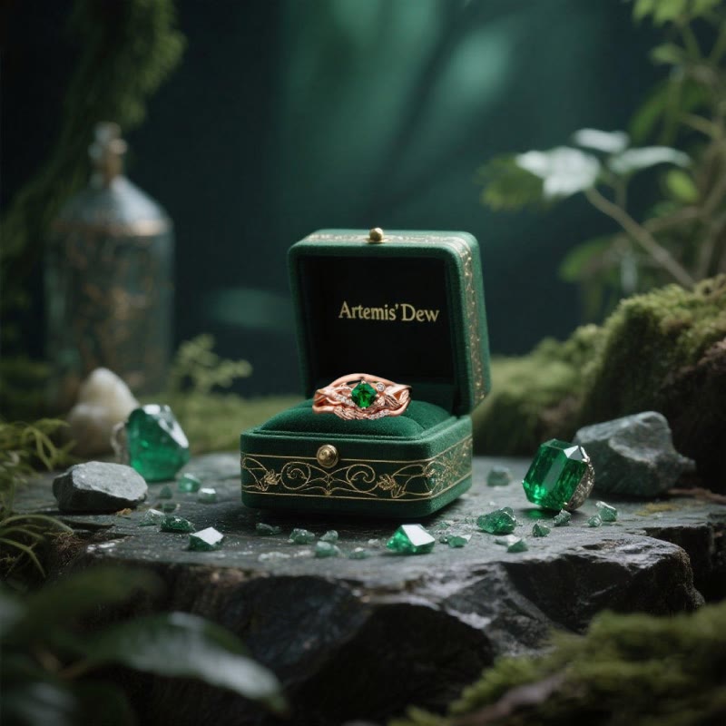 In the sacred groves of ancient Greece, Artemis, goddess of wilderness, gathered dewdrops from oak leaves at dawn. Where her fingers brushed the earth, emerald crystals bloomed within vines woven by moonlight. She cast these gems as shields for mortals braving life’s wilderness—each verdant stone a reservoir of resilience, every gem-studded vine a reminder: "True strength flows not from conquest, but from harmony with nature’s rhythms."
