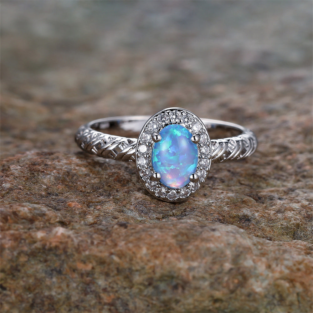 Olivenorma Oval Opal Trim Braided Rope Pattern Ring