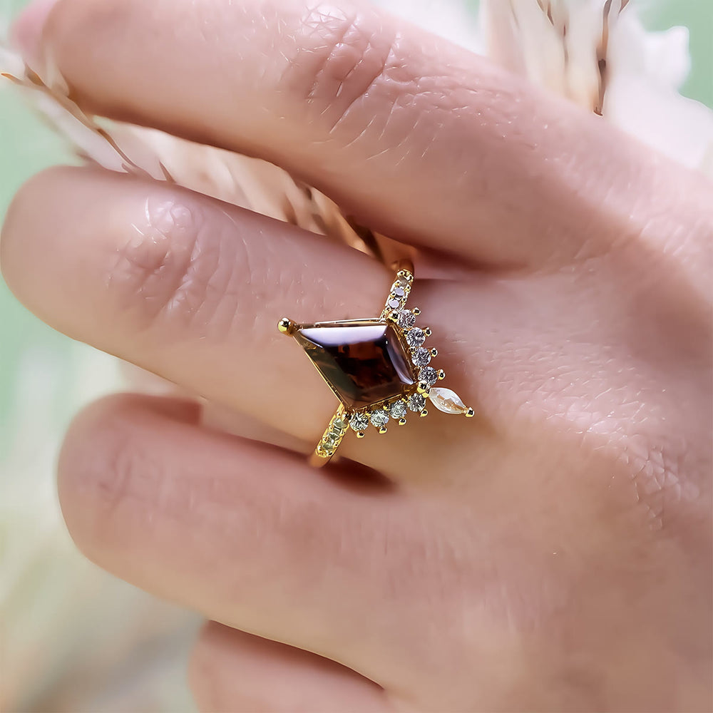 Olivenorma"Purification Stone" Salt and Pepper Kite Herkimer Diamond Engagement Ring