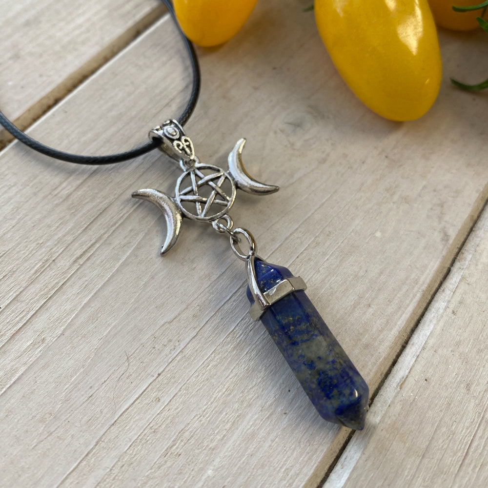 Olivenorma Triple Moon Pentagram Lapis Lazuli Healing Necklace