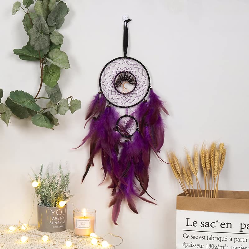 Olivenorma Healing Crystal Tree of Life Purple Dream Catcher