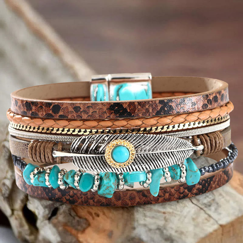 Olivenorma Brown Vintage Turquoise Multi-layer Leather Bracelet