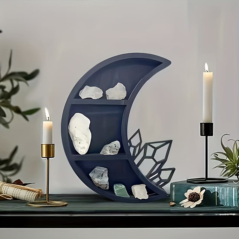 Olivenorma Moon Shaped Wooden Storage Rack Crystal Shelf