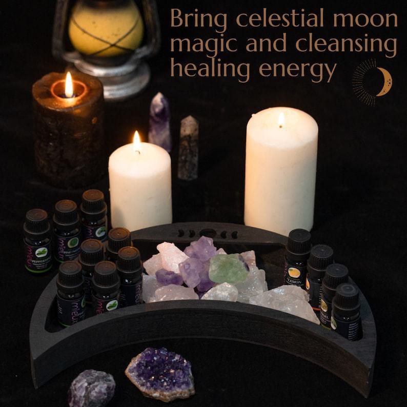 Olivenorma Wooden Crescent Gemstone Essentials Oils Storage Crystal Shelf