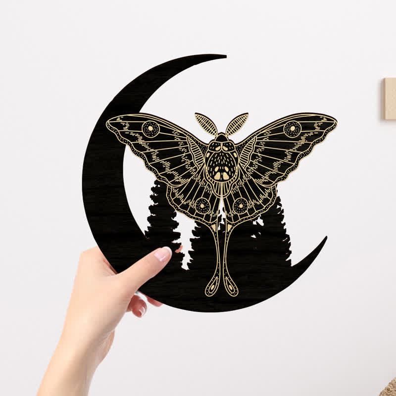 Olivenorma Crescent Moon Moth Wooden Wall Decor