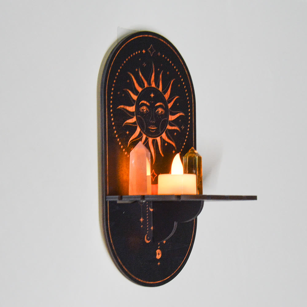 Olivenorma Moon And Stars Candle Holder Wall Mounted Crystal Shelf