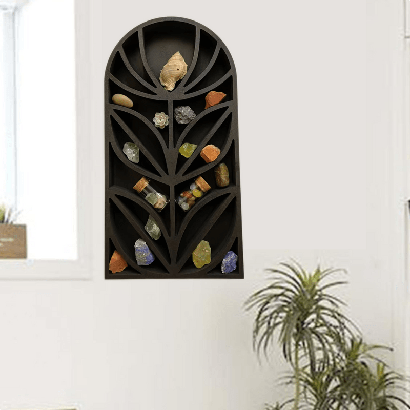 Olivenorma Dark Wood Mid Century Flower Crystal Shelf