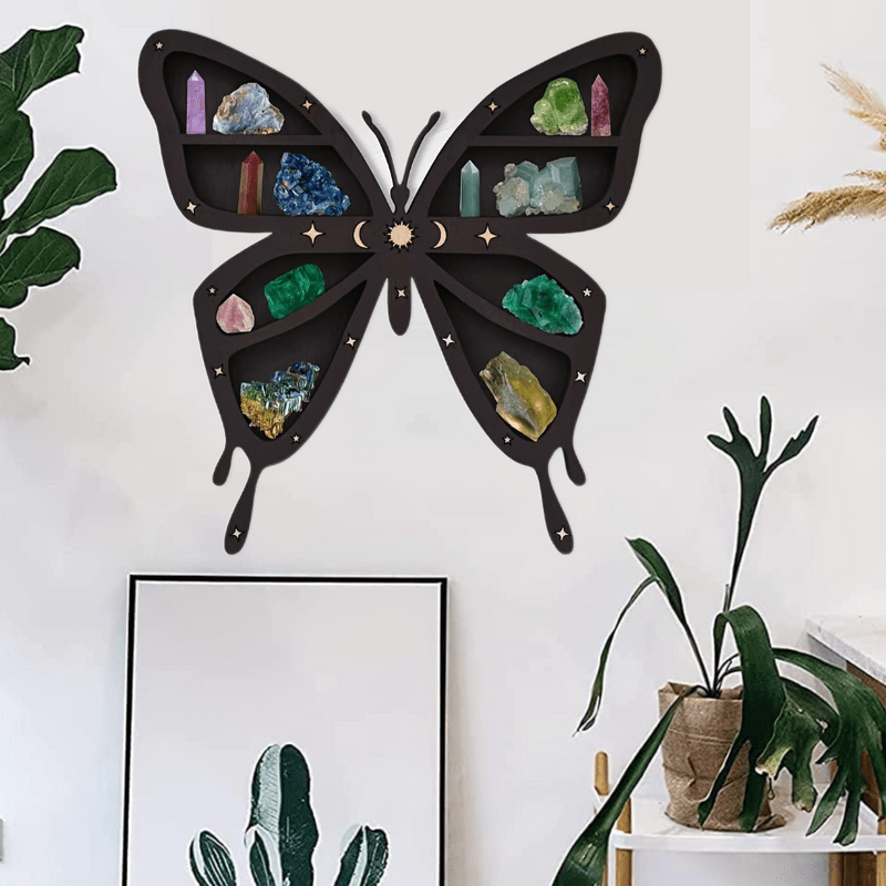 Olivenorma Dark Wooden Butterfly Moon Star Crystal Shelf