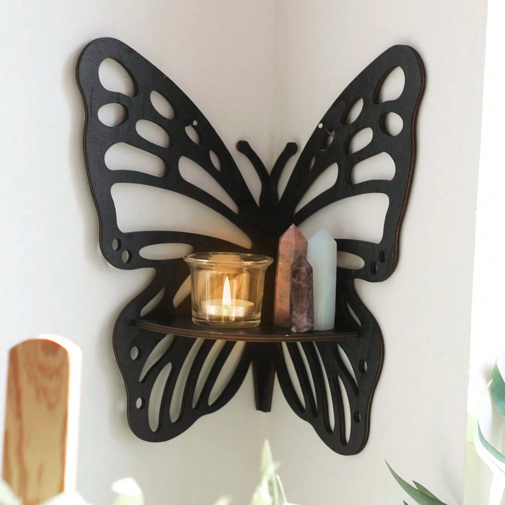 Olivenorma Butterfly Shaped Floating Corner Wall Holder Crystal Shelf