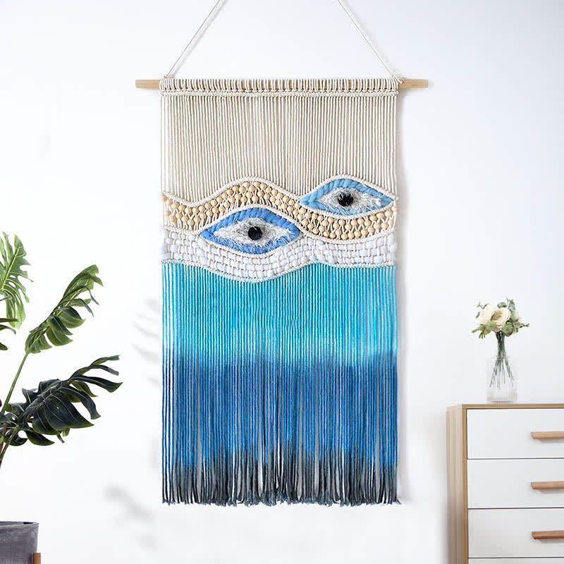 Olivenorma Weave Blue Evil Eye Dyed Tapestry Wall Decor